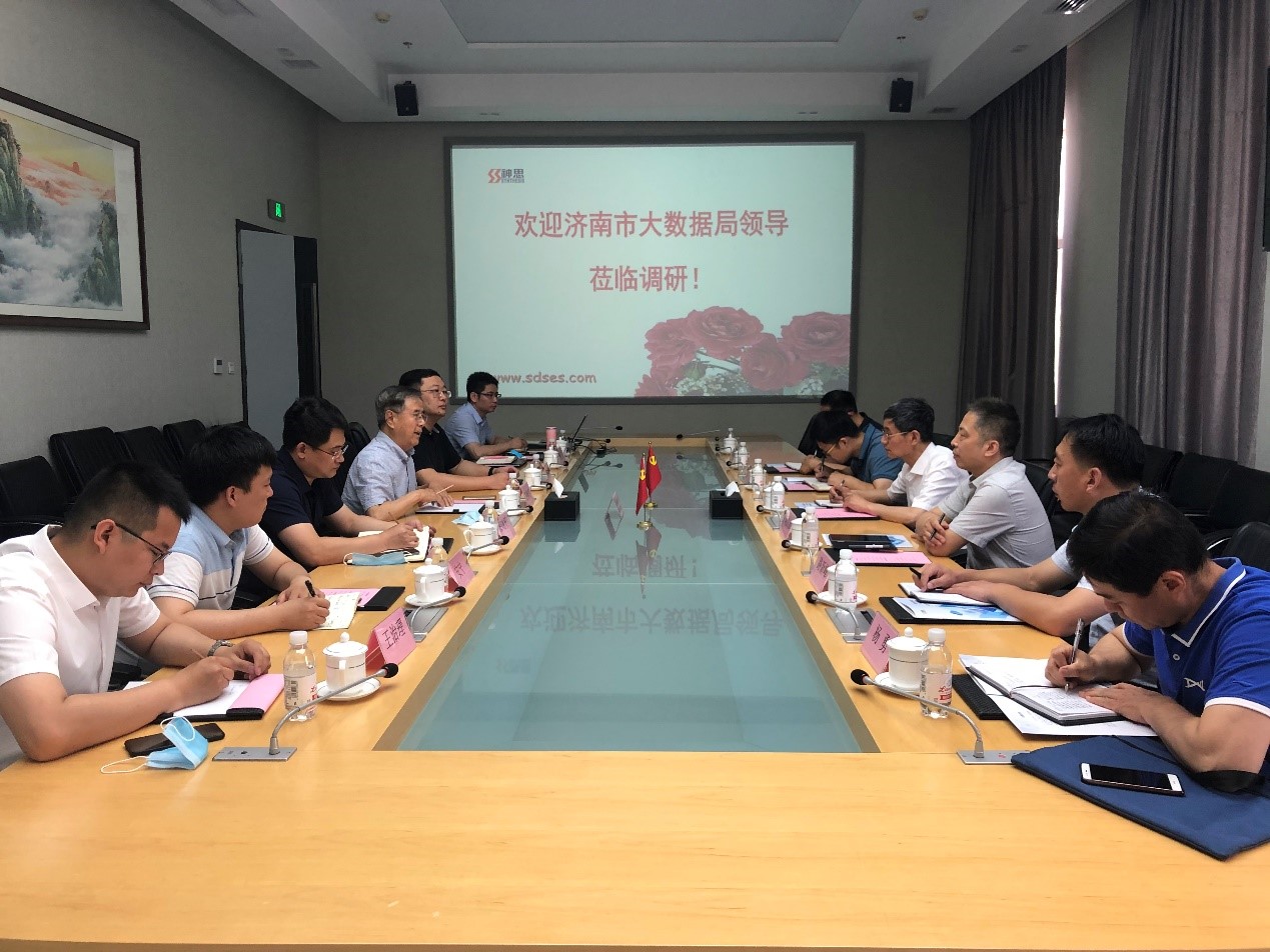 6月3日,濟南市大數據局黨組書記、局長張海靈,黨組成員、副局長劉大永一行蒞臨神思電子調研座談,神思電子董事長、總經理接待陪同。