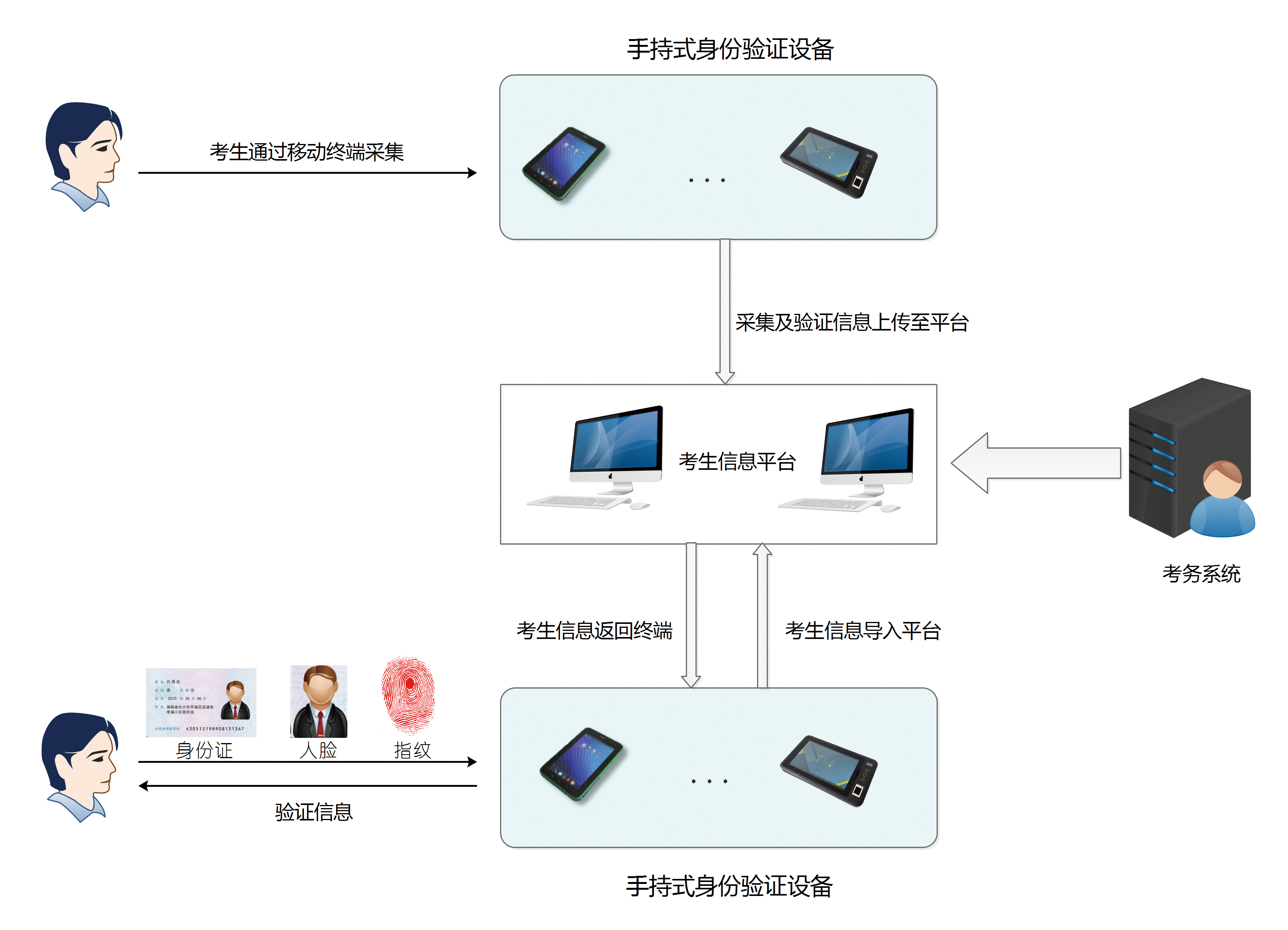 采集終端+移動核驗終端+考務綜合管理平臺。